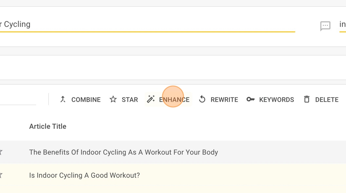 1. Click on the “Enhance” icon at the end of the article row. Hitlist.ai will automatically rewrite the article title.