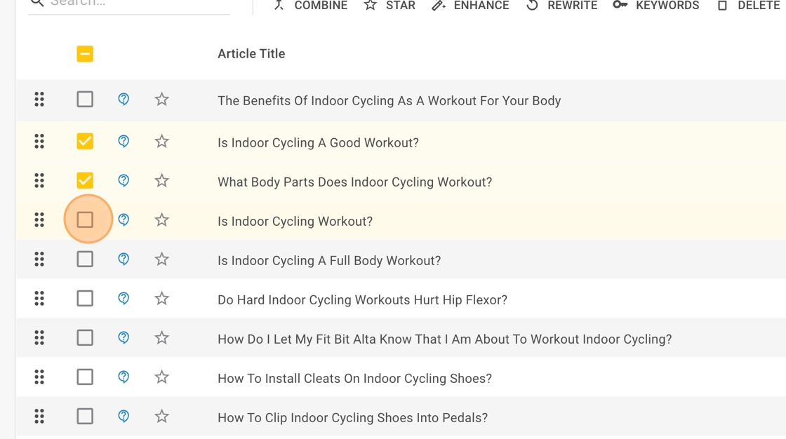2. Click on the selection checkbox to the left of each of the article titles you would like to enhance.